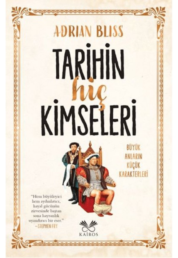 Adrian Bliss, Tarihin Hiç Kimseleri’nde okuru uzun zamandır sahne arkasında bekleyen ku¨çu¨k karakterlerin renkli du¨nyasına davet ediyor. Bu sefer sahnede Sinoplu Diyojen’in etkisinde kalan huysuz bir adam, Leonardo da Vinci’nin gelinciği, II. Charles’ı du¨şmanlarından koruyan muhalif meşe, VIII. Henry’nin vefakâr hizmetçisi ve bilinmezliğe hapsolmuş birçok hikâye var. Bliss, tarihî gerçekliğin ayarlarıyla oynayıp kurmacanın imkânlarını zorlayarak okuru hem gu¨ldu¨ren hem de du¨şu¨ndu¨ren bir yolculuğa çıkarıyor. Adı sanı bilinmeyen karakterler Tarihin Hiç Kimseleri’nde bir başkahramana dönu¨şu¨yor ve bu sıra dışı anlatıma yakın zamanda ortaya çıkan Antik Roma’nın şikâyet mektupları, tarihî mahkeme tutanakları, şişelere sıkıştırılıp okyanusun derin sularına bırakılmış anılar eşlik ediyor.