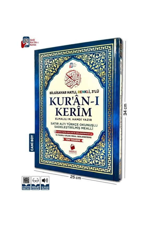 Ürün Adı: Cami Boy Satır Altı Türkçe Okunuşlu ve Türkçe Mealli Renkli Kuran-ı Kerim