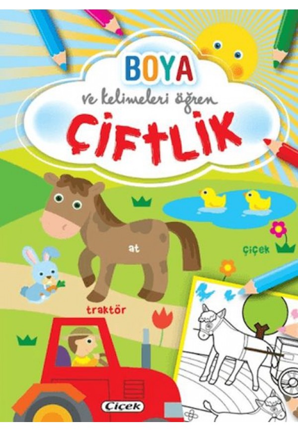 Çiftlik hayatını keşfetmenin en renkli yolu! Kedi, tavuk, inek, traktör ve çiftlikteki yapılar bu kitapta çocukları bekliyor. Boya ve Kelimeleri Öğren – Çiftlik, eğlenceli boyama sayfalarıyla birlikte çiftlik yaşamına dair kelimeleri öğretir. Çocuklar boyarken öğrenir, öğrenirken keyif alır. Kelime dağarcığını geliştiren, dikkat ve el becerilerini destekleyen eğitici bir aktivite kitabıdır. Çiftliğin neşeli dünyası bu sayfalarda!